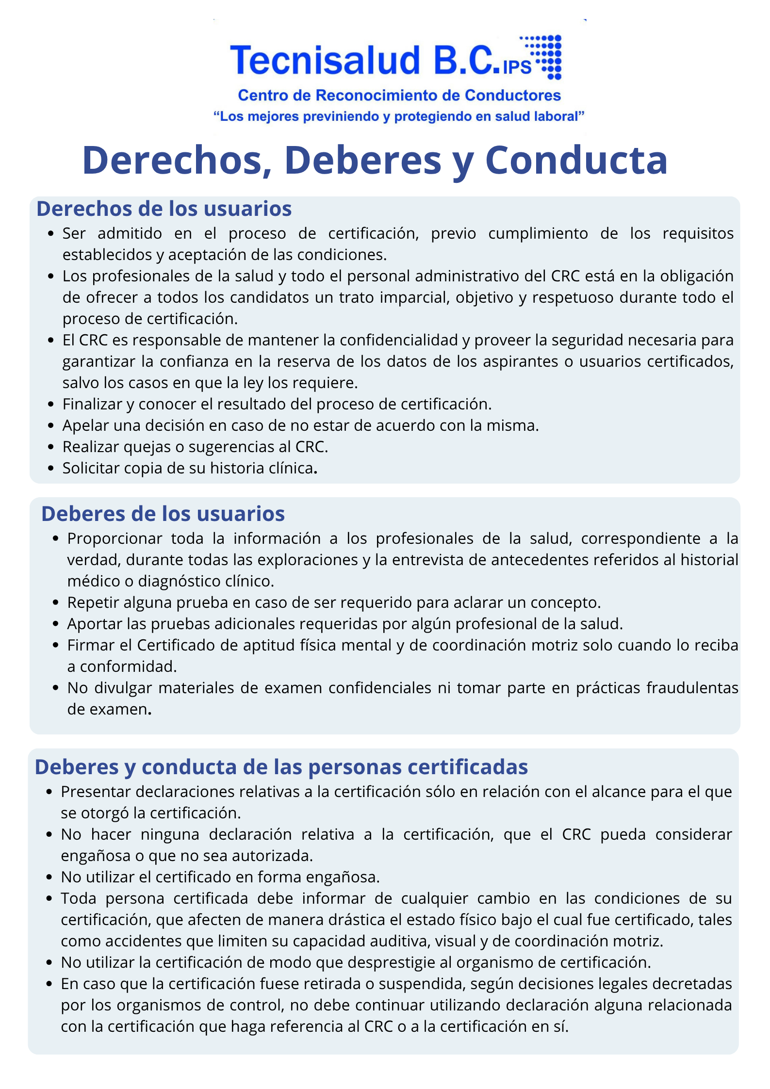 Deberes, derechos y conducta de los usuariosDeberes, derechos y conducta de los usuarios