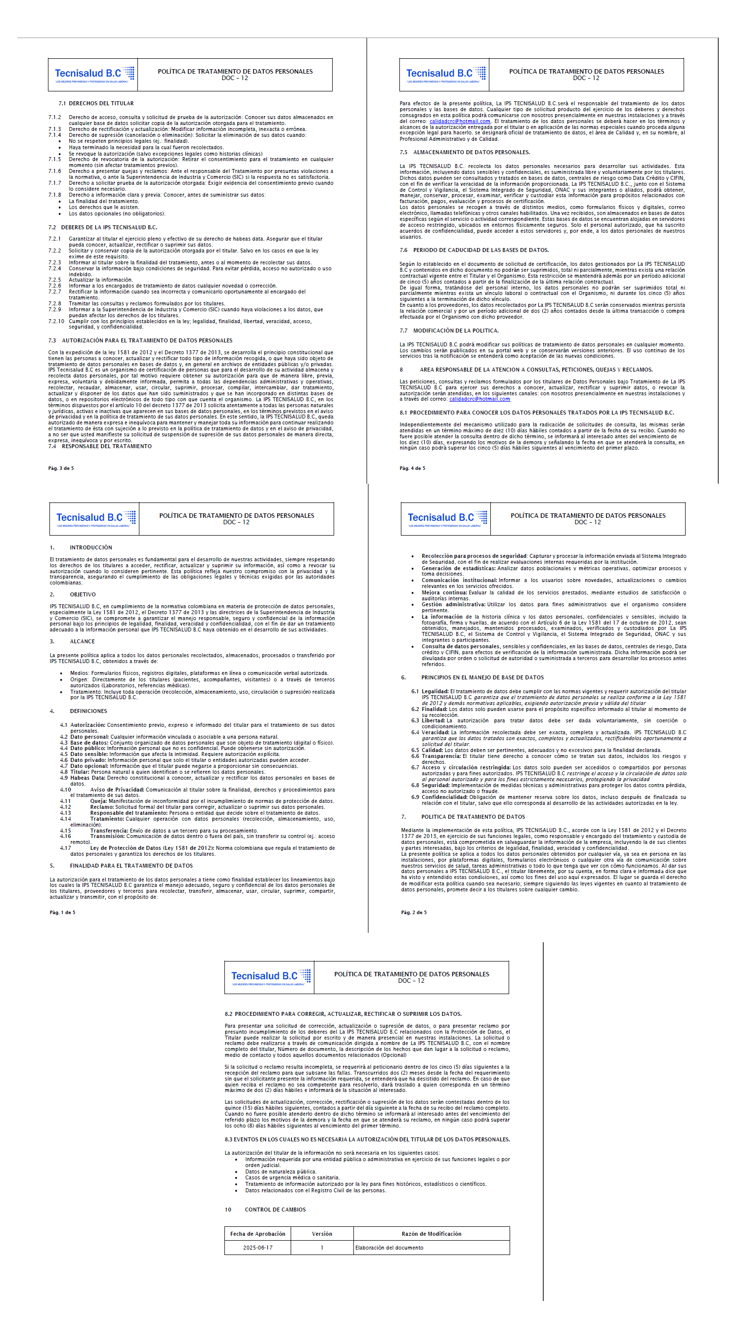 Política de Tratamiento de DatosPolítica de Tratamiento de Datos