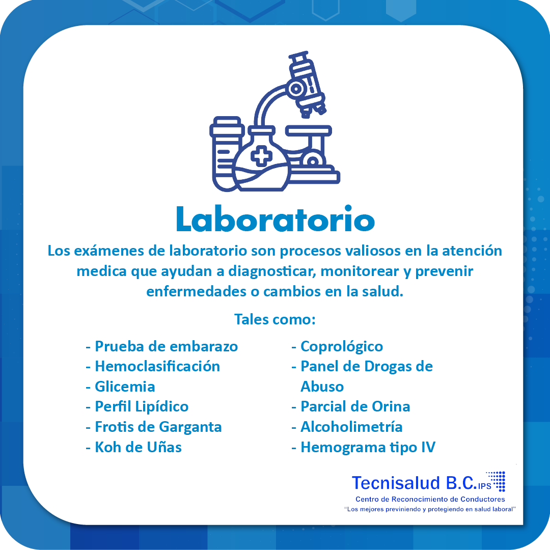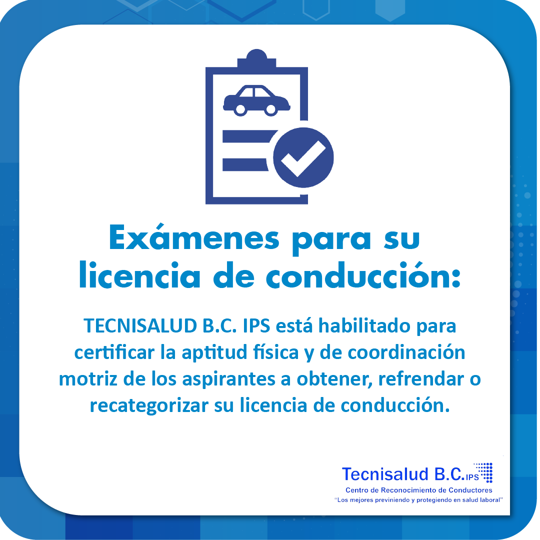 TECNISALUD B.C. IPS además de ser un centro médico. Es el único espacio diseñado para garantizar tu tranquilidad, proteger tu seguridad y validar tu productividad ante el mundo. ¿Necesitas una certificación médica, un examen laboral, escolar, de conducción o una prueba de laboratorio? Con nosotros estas más seguro.