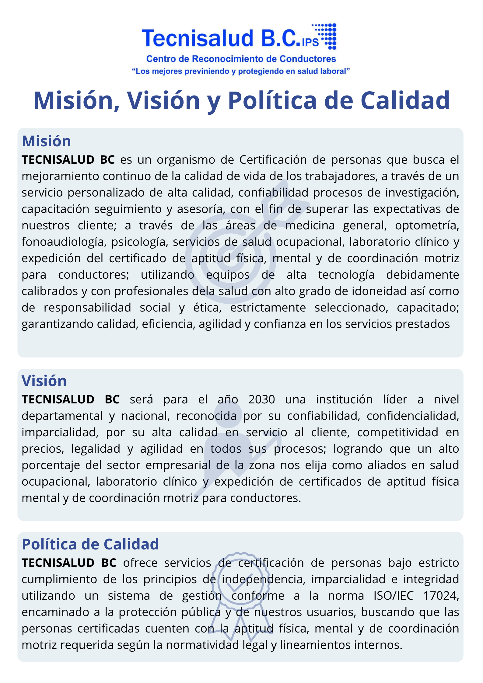 Misión, visión y política de calidadMisión, visión y política de calidad